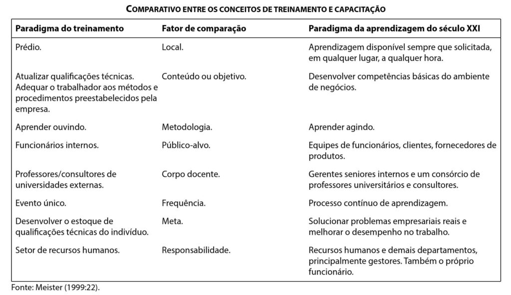 Ao avaliarmos o quadro proposto, mesmo que não nos atenhamos aos mínimos detalhes, fica evidente a mudança do paradigma do treinamento para o paradigma da capacitação.